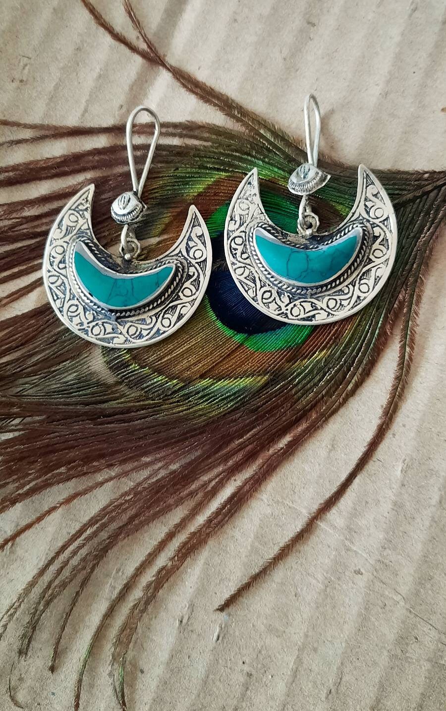 half moon earrings, turquoise silver earrings, red boho earrings, moon boho earrings, black boho earrings, tribal fusion, ethnic earrings, turquoise earrings, tribal fusion jewelry, natural stone earrings, silver earrings, boho chic, gypsy earrings