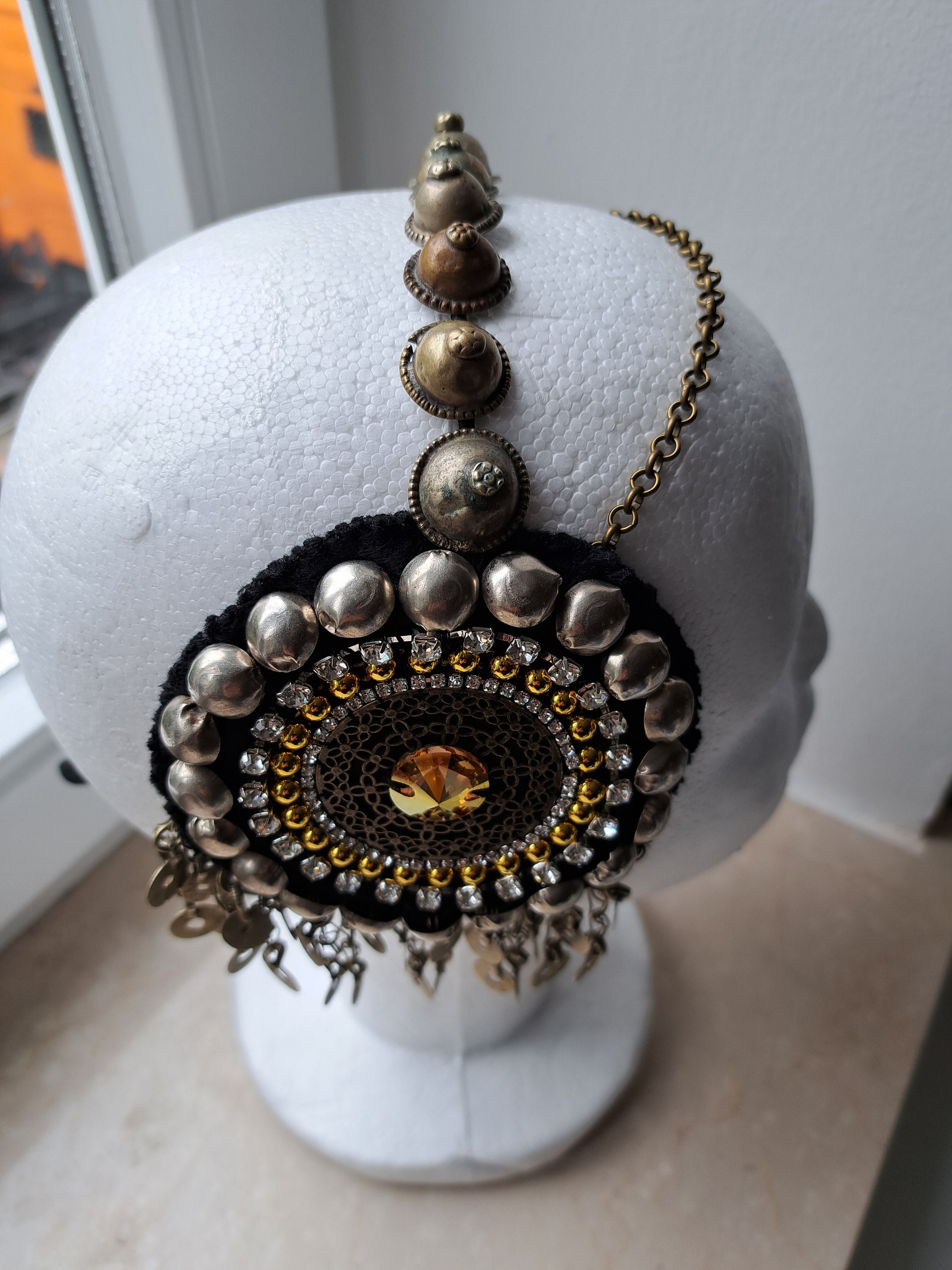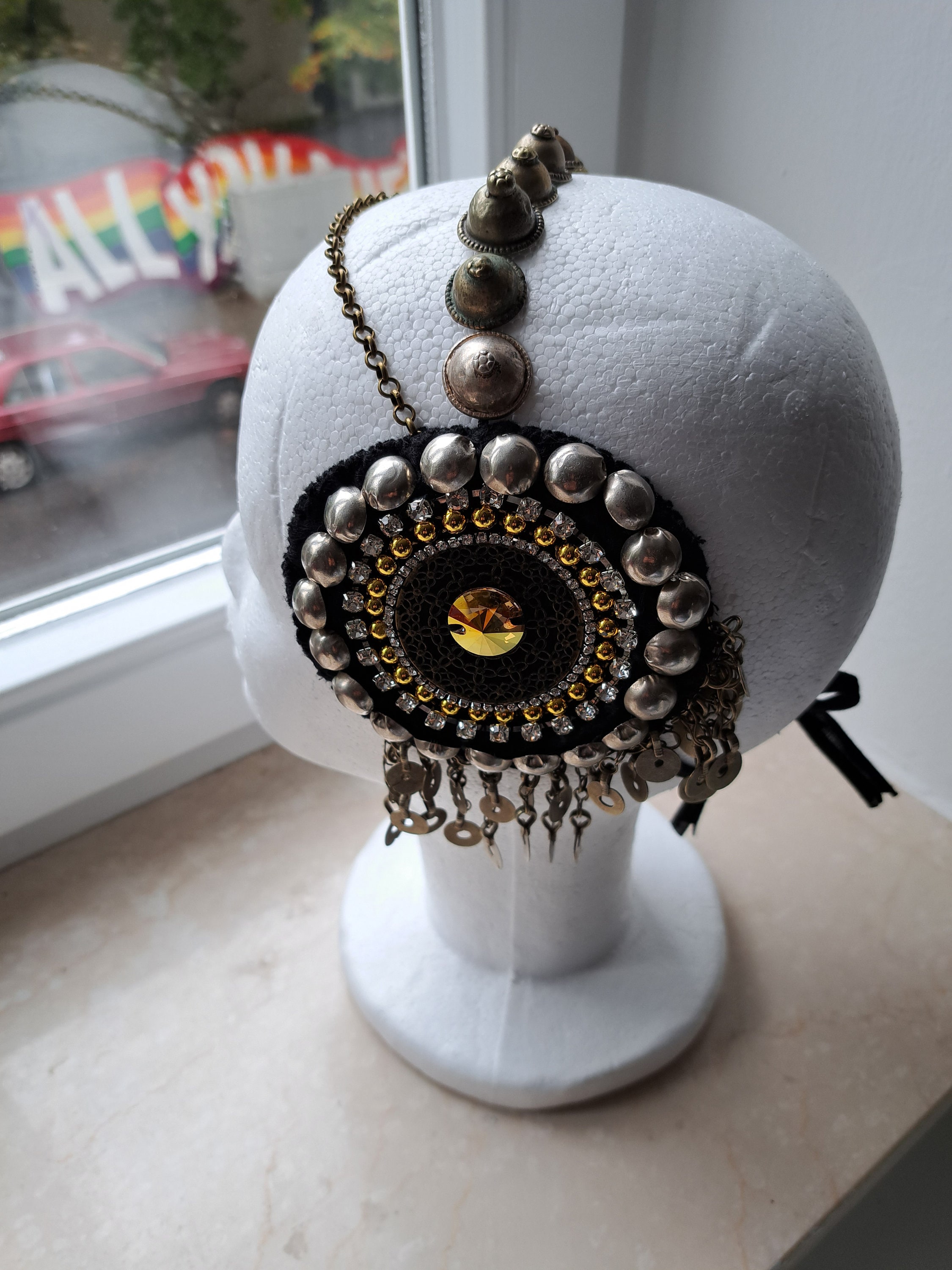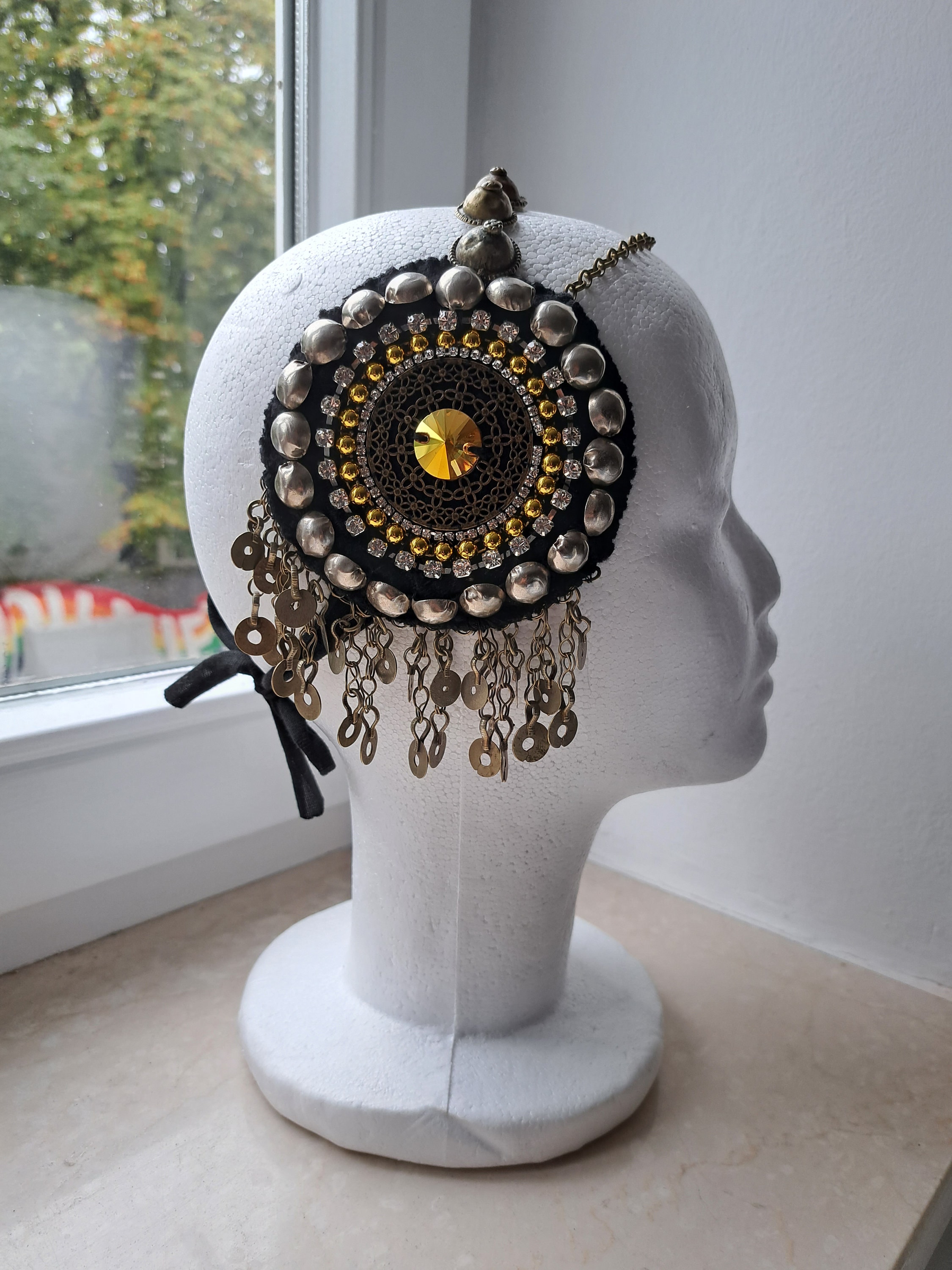 Mandala headdress, fusion bellydance headdress, kuchi headpiece, kuchi headdress, ATS jewelry, kuchi jewelry, fusion bellydance, headpiece, bellydance jewelry, bellydance headress, tribal fusion headdress, tribal fusion headpiece, tribal fusion